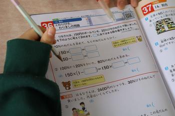 5年生算数「割合」 わりびきや、わりましの問題です。ドリルの問題を解き、基礎学力を身につけます。