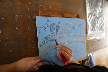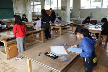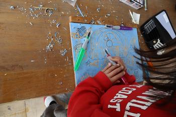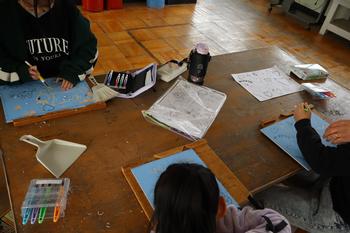 3・4年生図工「彩色版画」 彫刻刀を使用して、版画板を掘る活動が始まりました。