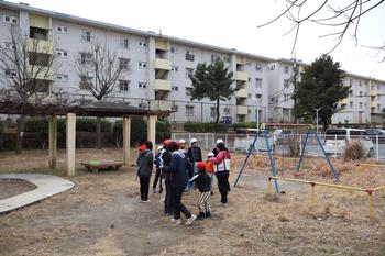 なかよし学級生活 学校の近くにある「なかよし公園」へ探検に行きました。遊具や大きな木など、たくさんの発見がありました!