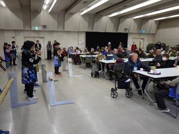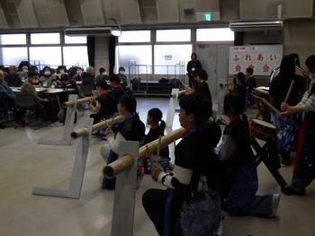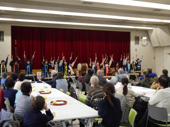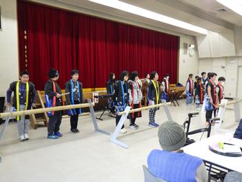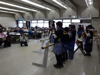 ①一重奏…一重奏は「常一ばやし」です。大勢のみなさんが見守る中、「常一ばやし」がホールに響き渡りました!その迫力にみなさんも圧倒されているようでした。アンコールをいただき、2回演奏することができました。