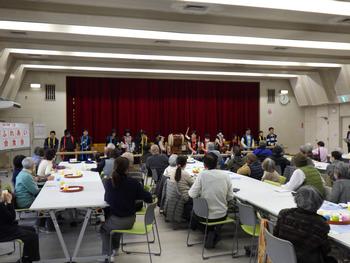 ○「常盤平つながる三重奏」…いよいよ地域の方との交流が始まります。集まってくださっているみなさんの多さに、子供たちの緊張が高まります!