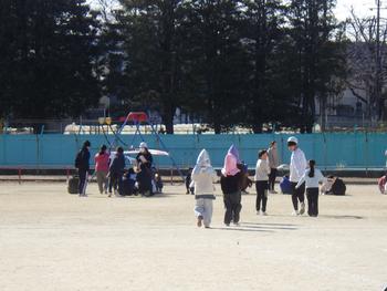 避難訓練を行いました。業間休み、ほとんどの子供たちは校庭にいました。場に応じた避難ができていたと思います。