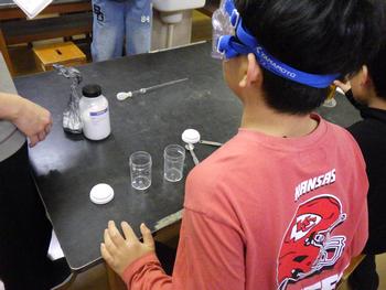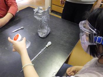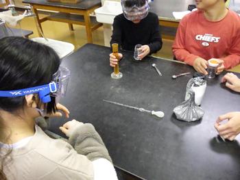 5年生理科「もののとけ方」 水に食塩やみょうばん溶かして変化を確認する実験です。少しずつ食塩やみょうばんを加えていきます。