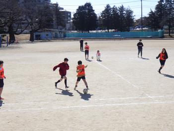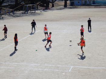 5・6年生体育「サッカー」 パス練習をした後、特別なルールでミニゲームをしました。