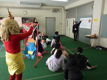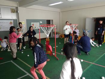 日本語を学んでいる子供たちを中心に「日本語タイム」です。今回のテーマは節分にちなんで「豆まき」です。鬼が登場する中、「豆まき」に似せた「玉入れ」をみんなでしました!