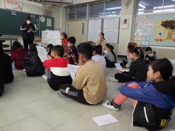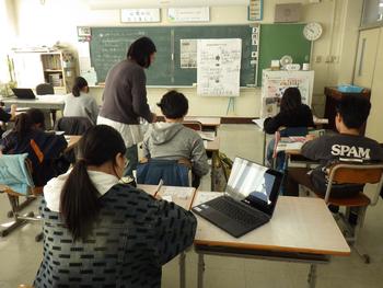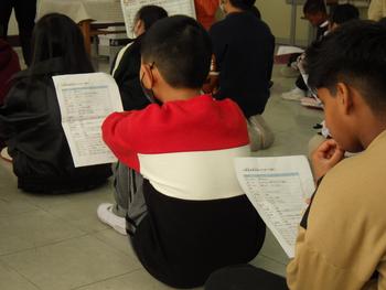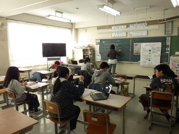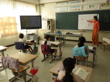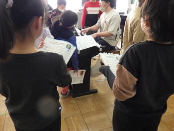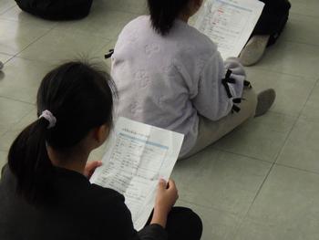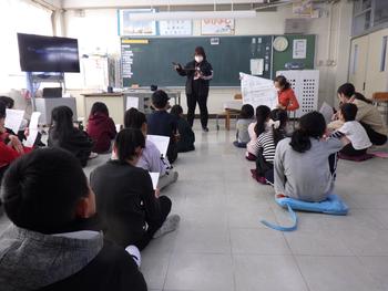 朝の会の時間、1~5年生が集まって「6年生を送る会」の確認です。みんなで声を出す場面があるようです!