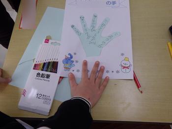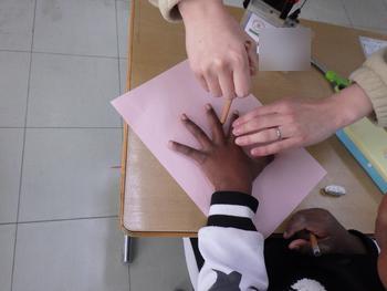 1年生生活 手形をとり、それぞれの指の名称を確認しました。子供たちの手は、これからどんどん大きくなります。