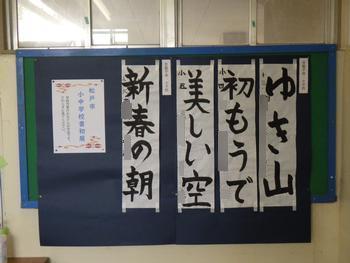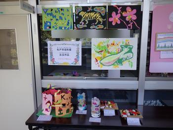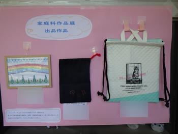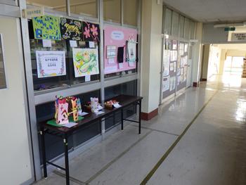 3学期の作品展に出品した児童の作品を展示しています。「家庭科作品展」と「造形展」は家庭科室前の渡り廊下に、「書初展」は第2校舎の昇降口に展示しています。授業参観時にご覧いただきたいと思います。