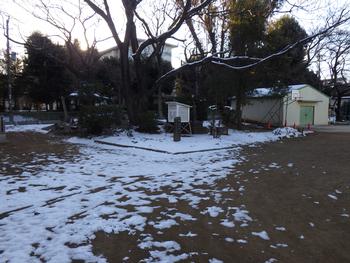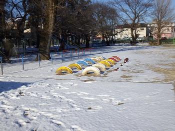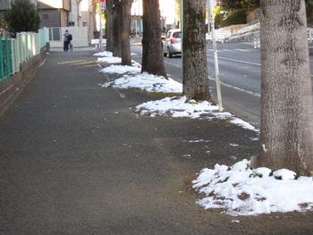 校庭の一部や、街路樹の植え込みなどには、雪が残っていました。フワフワでサラサラの雪です。