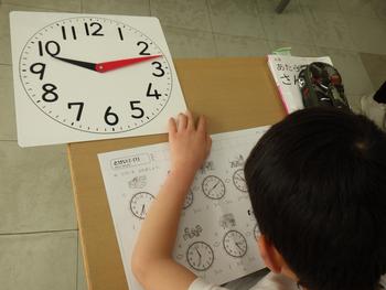1年生算数「なんじなんぷん」 時計のよみ方の学習です。長針と短針の違いを意識します。