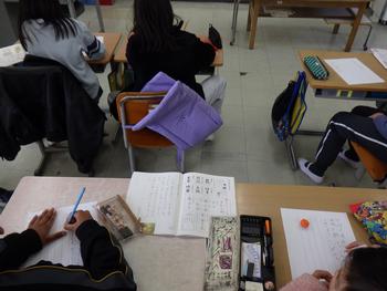 4年生書写 今回の学習は「硬筆」です。お世話になった方への感謝の気持ちを、丁寧な字で書きました。