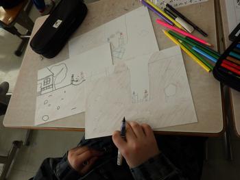 5・6年生図工「絵のお話でプレゼント」 1・2年生に向けて、紙芝居を作成です。完成したら、1・2年生に見せる予定です!
