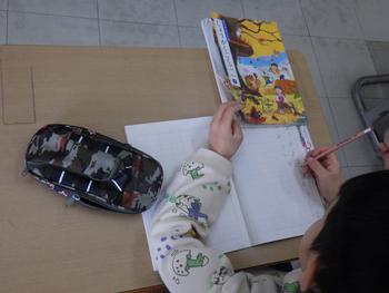 1年生国語 それぞれが好きなものや好きなことを作文です。作文の音読もしました。