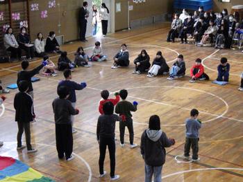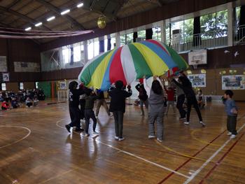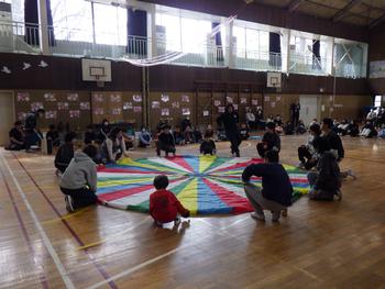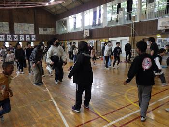送る会④ 全校レクです。「送る会版ハッピータイム」です。子供たちは、たくさんの笑顔を見せながら、活発に活動していました!