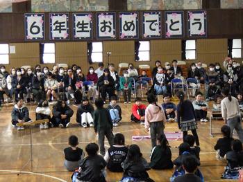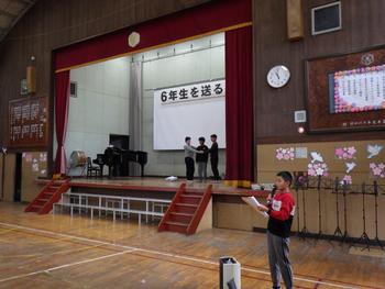 「6年生を送る会」を行いました。常一小だからこそのあたたかさを感じる会だっと思っています。3学期に入ってから取り組んできたことを、子供たちは、しっかりと表現することができたと思います。1~5年生は、6年生への感謝の気持ちをそれぞれの役割で示していました。6年生は、家族の方、1~5年生、地域のみなさんへ、たくさんの「ありがとう」の気持ちを、思い出の劇や歌で表していました。ご参観いただいた保護者のみなさま、地域の皆様、ありがとうございました。来週は、もう3月です。