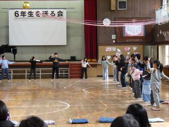 送る会② なかよし学級の発表です。軽快なダンスやバルーンを取り入れた発表でした。なかよし学級の6年生も一緒に参加です!