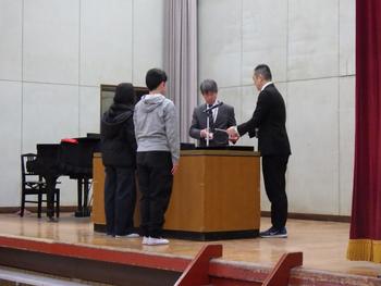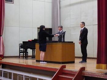 朝会の前に、児童会のあいさつ運動・家庭科作品展・運動能力証・造形展に関する表彰をしました。みなさん、おめでとうございます!朝会の最後は「校歌斉唱」です。校歌も、全校で歌うのは今日が最後でした。