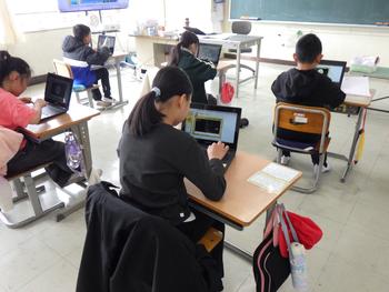 3年生 タブレットで、ローマ字入力に慣れるための練習です。ゲーム形式で、できるだけ早く言葉を入力します。