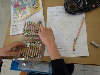 1年生図工「まごころメダルをプレゼント」 プレゼントをするメダルを作成します。どんなメダルにするか、下絵を考えました。