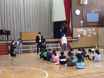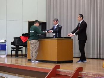修了式前に、「まちっこプロジェクト」の表彰をしました。修了式中で、代表の子どもたち3名が、3学期や1年間のまとめを発表しました。