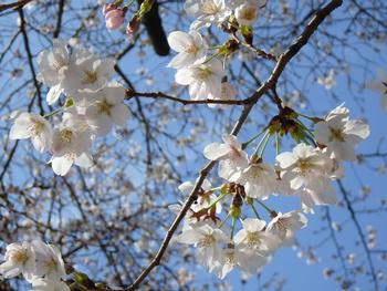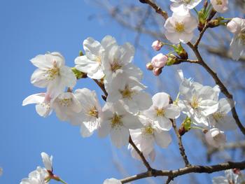 日中、気温が上昇し、桜の開花が進みました。青空に映える桜を楽しむことができました。