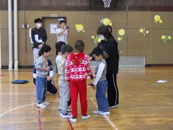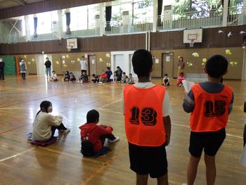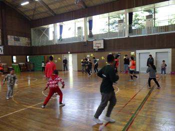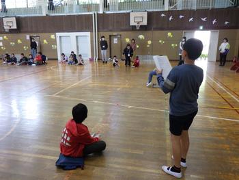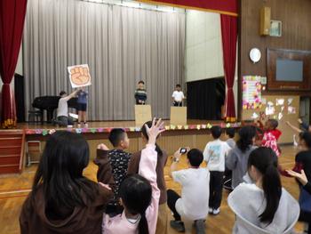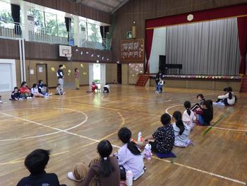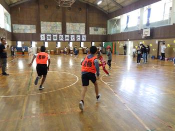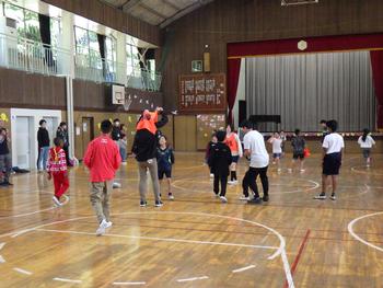 1年生を迎える会② 会の後半は全校レクです。全員でじゃんけんと、鬼ごっこをして楽しい時間を過ごしました!