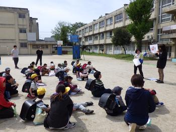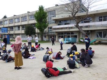 午後は「集団下校」の訓練をしました。下校コースごとに分かれて、教職員が安全を確認しながら集団で下校しました。「集団下校」は、天候不順や治安の確認が取れないなど、子供たちの安全な下校が難しいと学校が判断した場合に実施します。