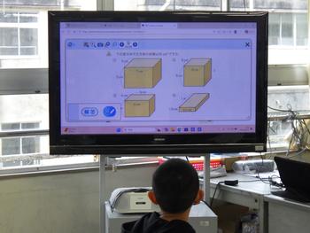 5年生算数「直方体や立方体の体積」 公式を頭に入れて、練習問題に取り組みました。