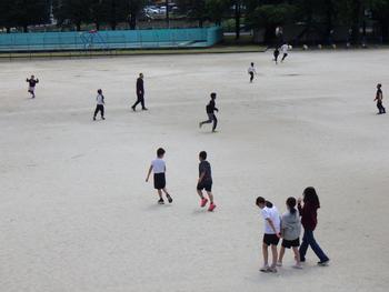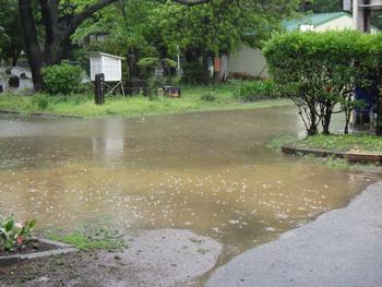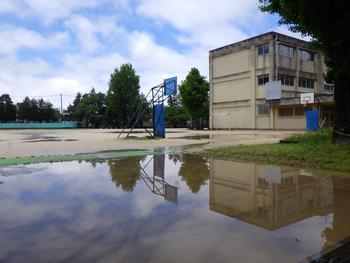 午前中は雨がかなり強く降る時間があり、校庭に大きなみずたまりができました。水はけがよいため、昼休みは子供たちが校庭で活動しました‼