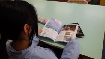 6年生国語 学校図書館で読書の時間です。お気に入りの本を選びました。