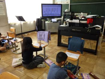 5・6年生音楽 鑑賞の時間です。「おぼろ月夜」を聞いて、感じたことをまとめました。