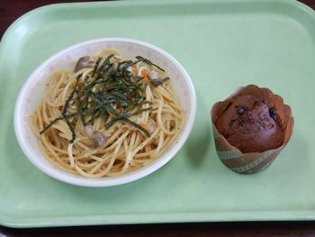 9月25日(木)の給食 和風スパゲッティ・チョコカップケーキ