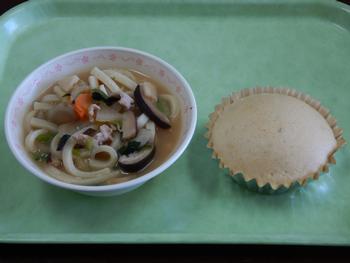 11月28日(金)の給食 みそ煮込みうどん・きなこ蒸しパン