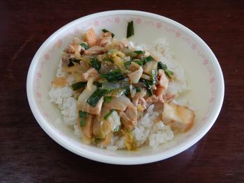○ぶたキムチ丼は、肉や野菜に加え、海の幸である、あさりも入りました。キムチの旨さが具材を包み、ライスがどんどん進みます。わかめサラダは、酢を中心としたさっぱりとした味付けです。わかめは歯ごたえがあり、磯の風味が漂います。中華コーンスープは、とろみがあり、コーンの甘さと、ときたまごのなめらかさを味わいました。