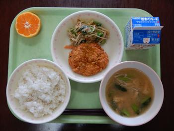 「ごはん・かりかりがんも・ごま和え・えのきとだいこんのみそ汁・みかん・牛乳」