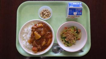 「ハヤシライス・ツナサラダ・きなこ豆・牛乳」