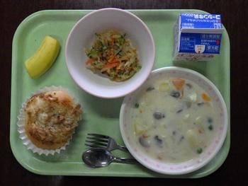 「手作りツナパン・クリームシチュー・大根サラダ・バナナ・牛乳」