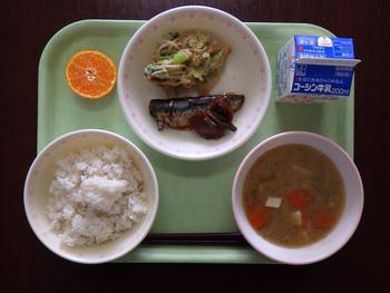 「ごはん・いわしの甘露煮・ごま和え・みそけんちん汁・みかん・牛乳」