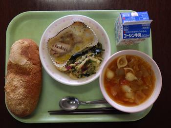 「きなこあげパン・白身魚のみそマヨネーズ・海藻サラダ・ミネストローネ・牛乳」
