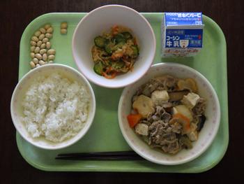 「ごはん・すき焼き・ハリハリづけ・いりだいず・牛乳」