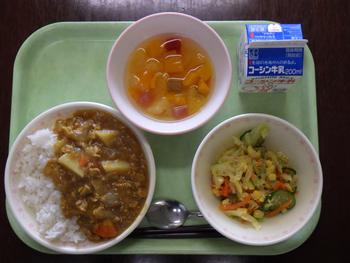 「カレーライス・コーンサラダ・ゼリー入りフルーツポンチ・牛乳」