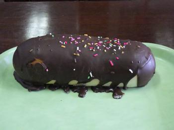 ○バレンタインデーを先取りした献立の提供です。チョコつきパンは、大きなコッペパンの表面をたっぷりとチョコレートが覆いました。ちりばめられたスプレーチョコの色彩がきれいです。子供たちは目を輝かせながら食べていました。ポークビーンズは、トマトの酸味や大豆の甘さを味わいました。じゃこサラダは、酢を中心にしたドレッシングで味付けした野菜に、ちりめんじゃこをふりかけました。