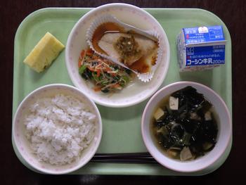 2月16日(月)の給食 さばのねぎみそかけ・なめたけ和え