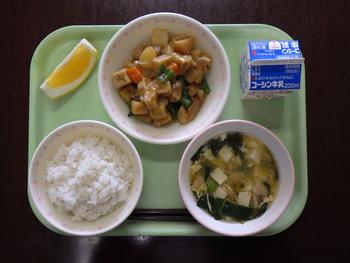「ごはん・高野豆腐の揚げ煮・かきたま汁・かわちばんかん・牛乳」