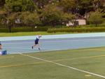 普段使ったことのないタータン(青く舗装されているトラックの部分)の感じをアップから確かめていました。