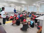 子ども達は、注意事項を確認したあと、元気いっぱいの挨拶で競技場に向かいました。
