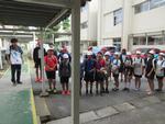 職員が下校指導する中、子ども達は13:00の小雨のうちに全員下校することができました。