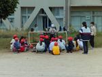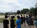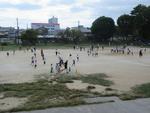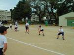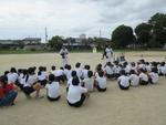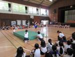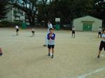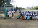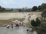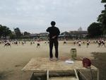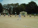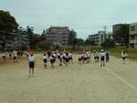 2時間目終了のチャイムとともに子ども達が校庭に出てきます。クラス毎に集まって準備体操を始めます。高学年になると体育係?を中心に自分たちで号令をかけていきます。初日とは思えないほどみんな手際よく活動しています。