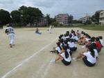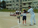 業間休みからコーチしている様子を校舎の窓からみんな見学しています。5,6年生の野球少年達は「俺たちの時はなかったぁ~」とか「今日に限ってロッテのユニ着てこなかった~!」と目をきらきらさせながら、悔しがってました。