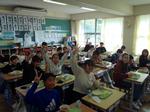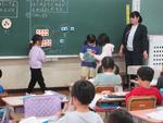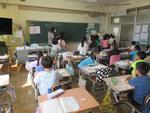 2年生が「三角形や四角形の図形を調べよう」、4年生は「倍の見方」の学習を行っていました。どちらのクラスも集中して算数に取り組んでいます。